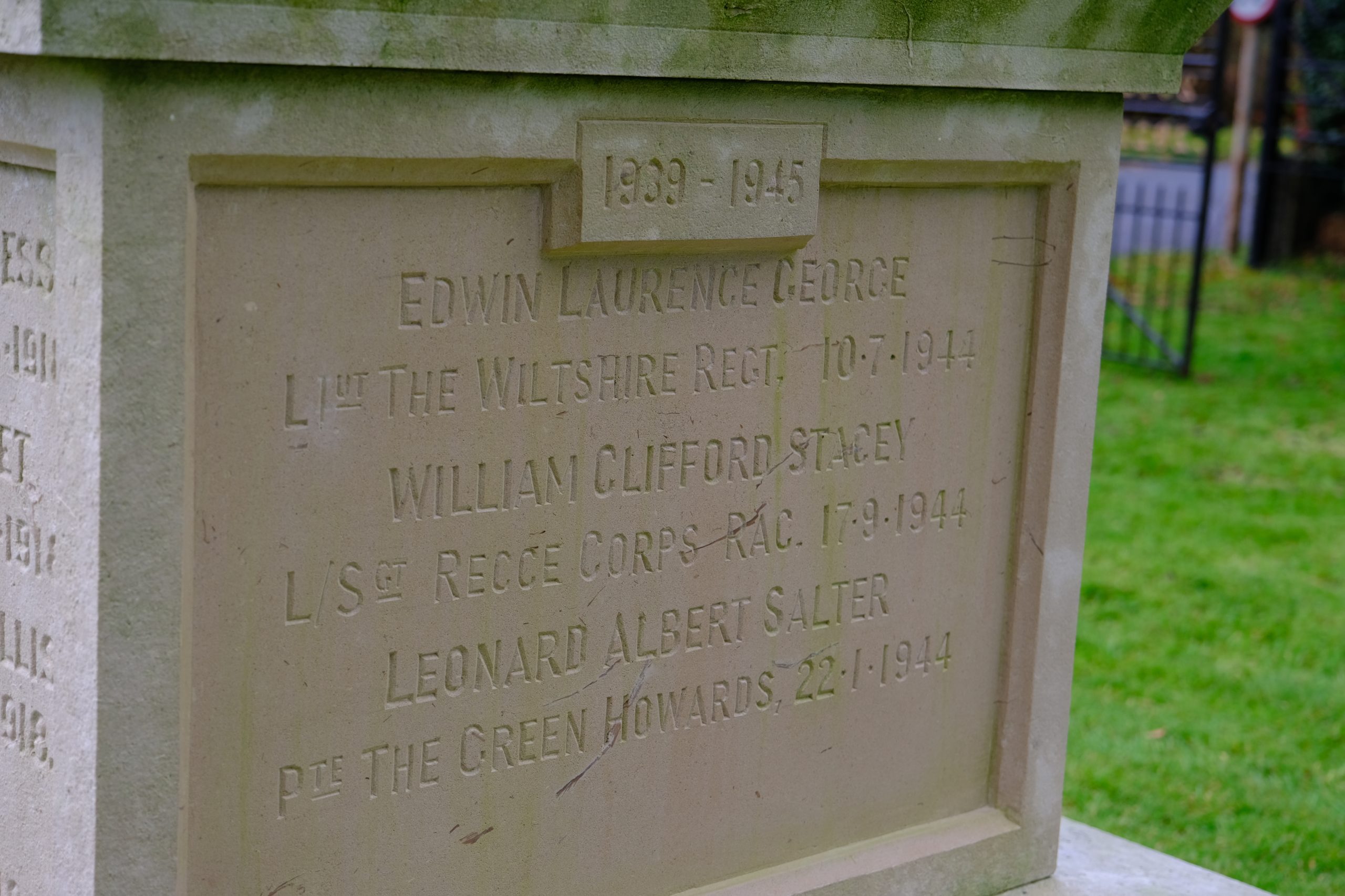 The names of three men, Lieutenant Edwin Laurence George, Lance Sergeant William Clifford Stacey and Private Leonard Albert Salter, were added to the memorial which was unveiled at a special ceremony on Tuesday 11th November.