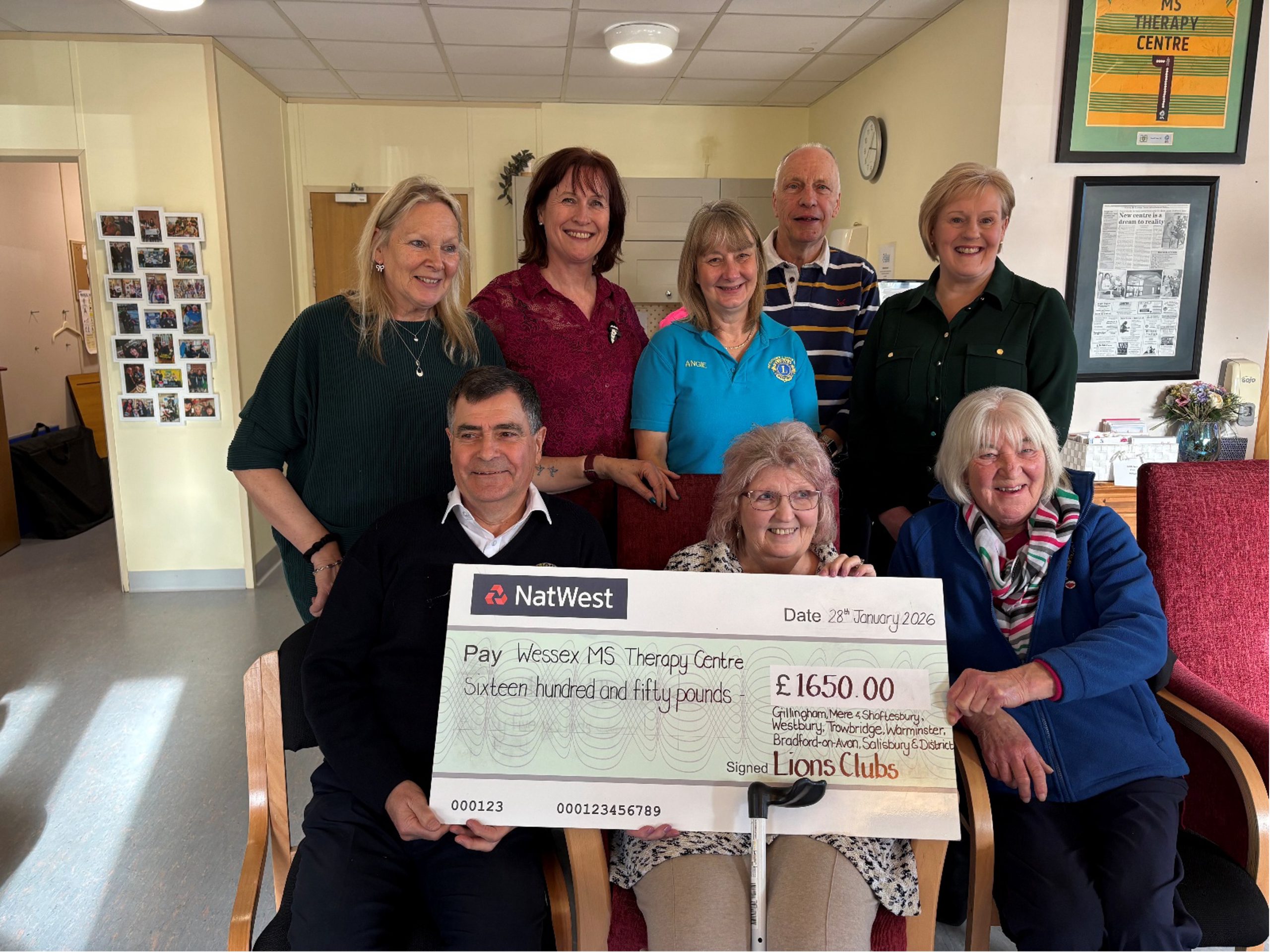 The clubs from the local zone of Lions International – Bradford on Avon, Salisbury, Trowbridge, Warminster, Westbury, and Gillingham, Mere and Shaftesbury – joined forces to fund a 10-litre compact oxygen concentrator for the Wessex MS Therapy Centre.