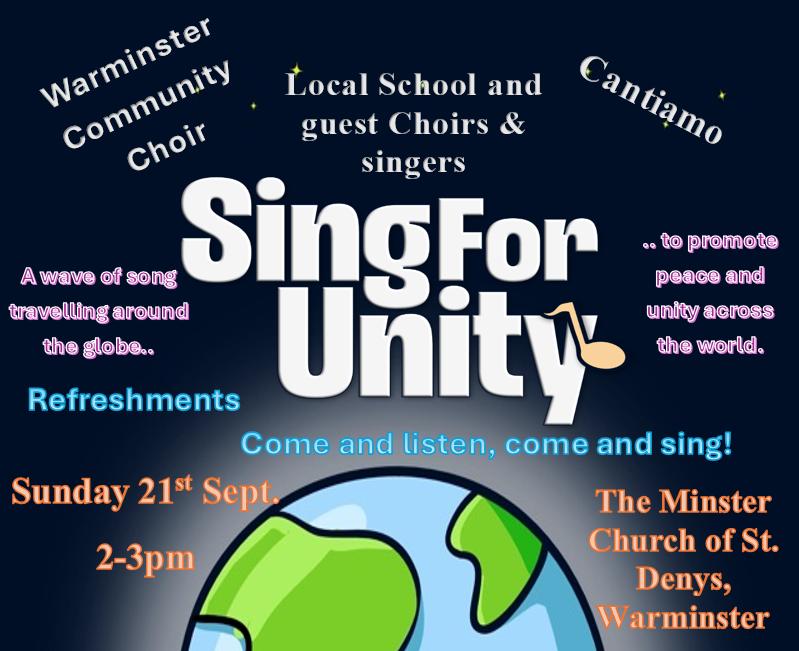 Local choirs will be adding their voices to a worldwide celebration of peace when Warminster Community Choir hosts a Sing for Unity event next weekend.