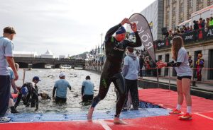 He said, “There were thunderstorms and lightning on the morning of the race. We were a bit worried whether the event would go ahead. It was a late start, but we eventually did get to begin the swim.