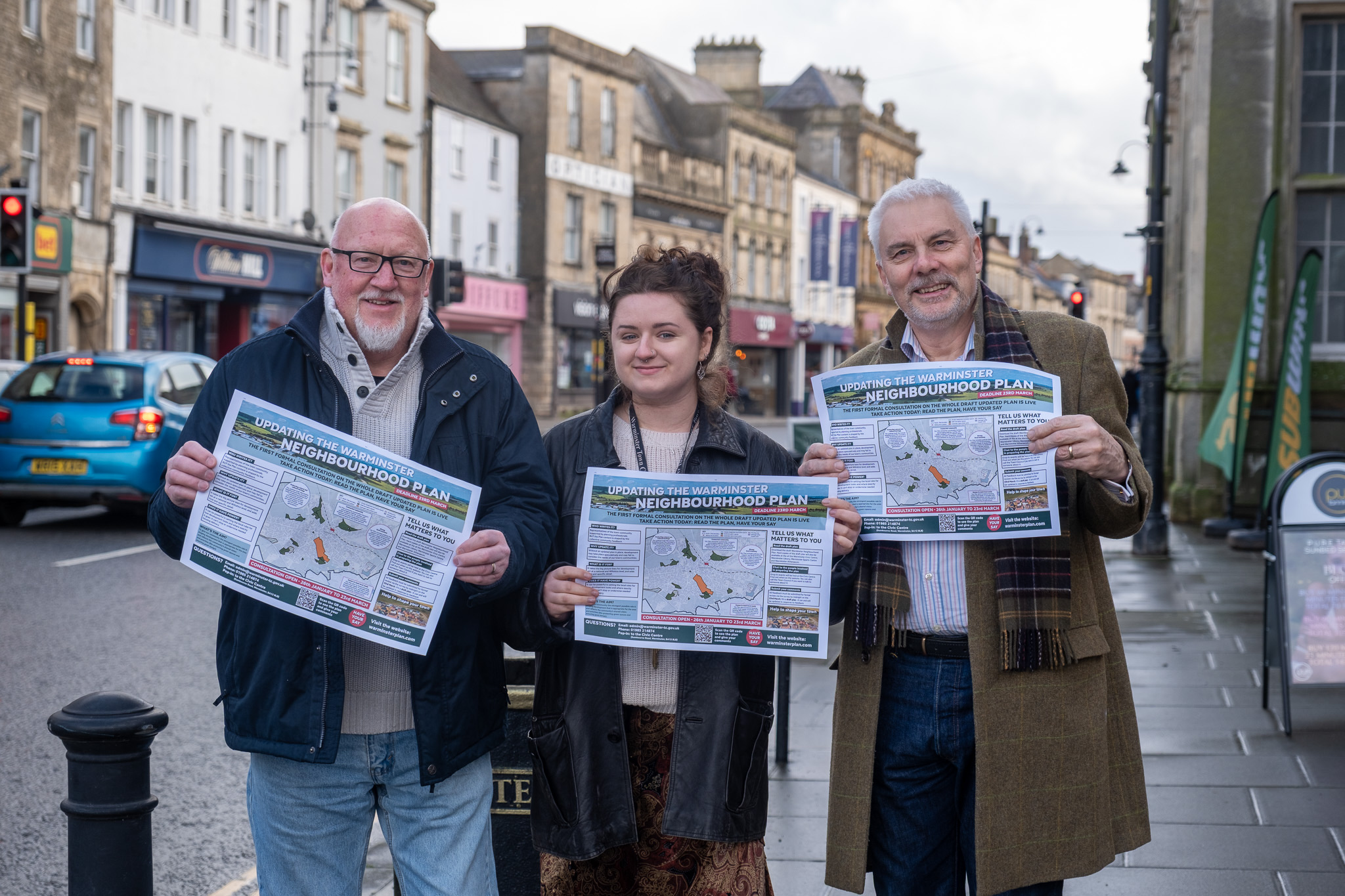 Pictured: Cllr Philip Keeble, Steering Group Chair; Rhianna Cowdy, Town Development Officer; and Cllr Andrew Cooper, Mayor of Warminster
